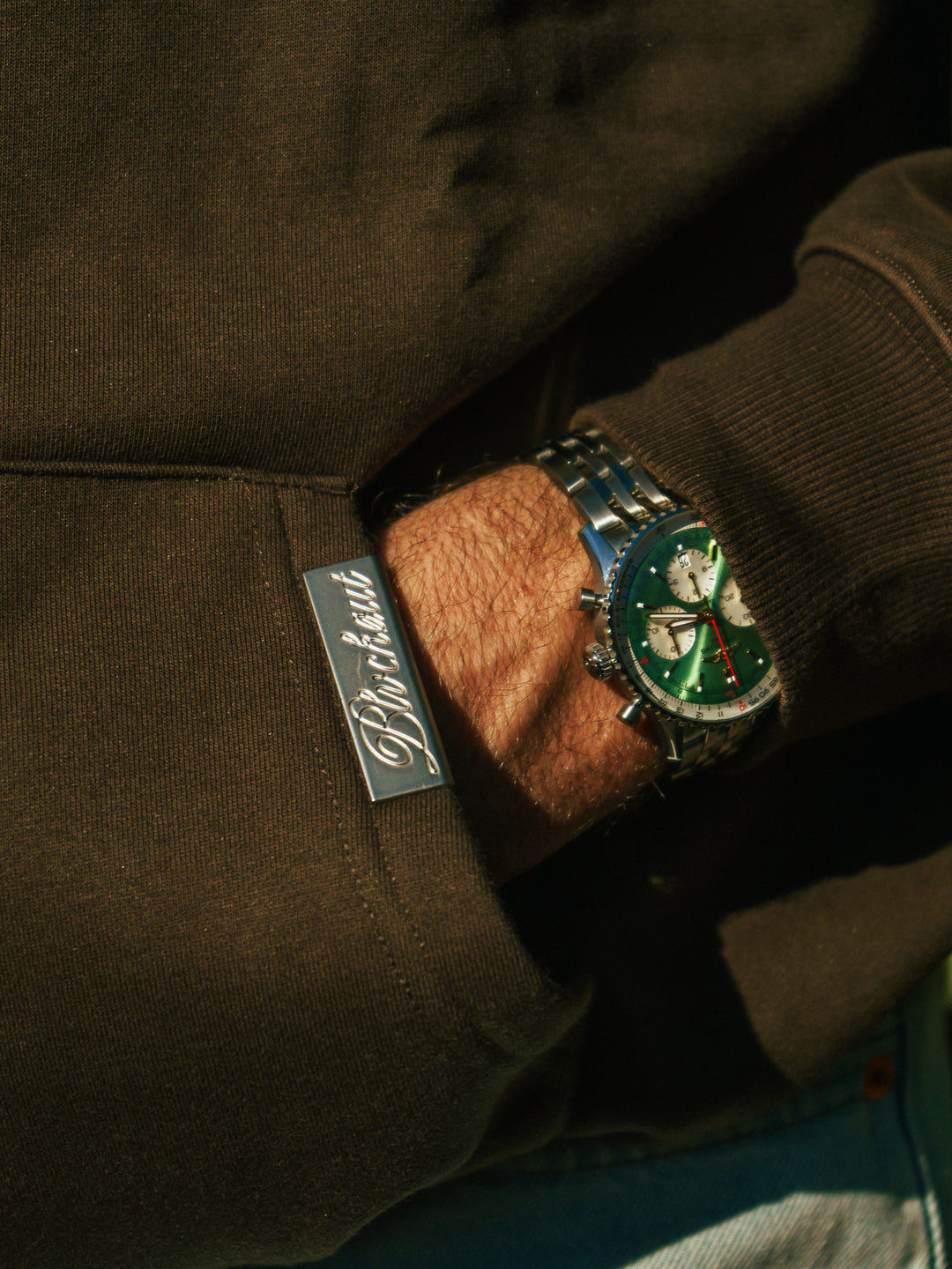 Our hoodie was built from the ground up, from the fabric to every single measurement. Designed to stand out without making noise. The logo came later... because respect comes from the fit.